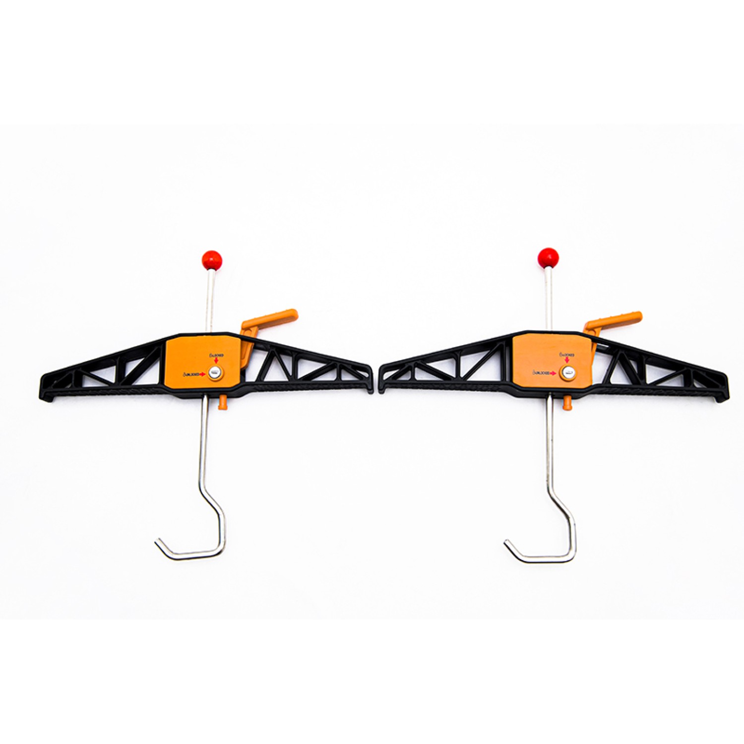- 2 μεταλλικούς γάντζους από ανοξείδωτο ατσάλι 304, οι οποίοι αγκιστρώνουν επάνω στην μπάρα οροφής και ασφαλίζουν τον εξοπλισμό σας